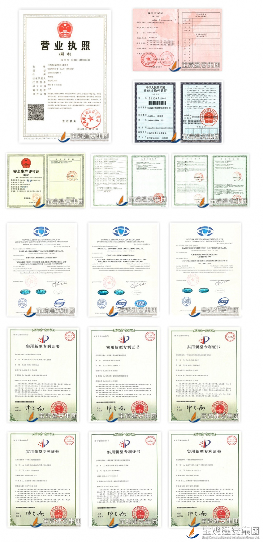 Qualification:the company has qualifications of first-level general contracting of housing construction, second-level general contracting of municipal public engineering and mechanical & electrical installation engineering, professional first-level general contracting of steel structure work, fire-fighting facilities engineering, lifting equipment installation work and building decoration engineering, as well as professional second-level contracting of ancient garden construction engineering and building curtain wall engineering.