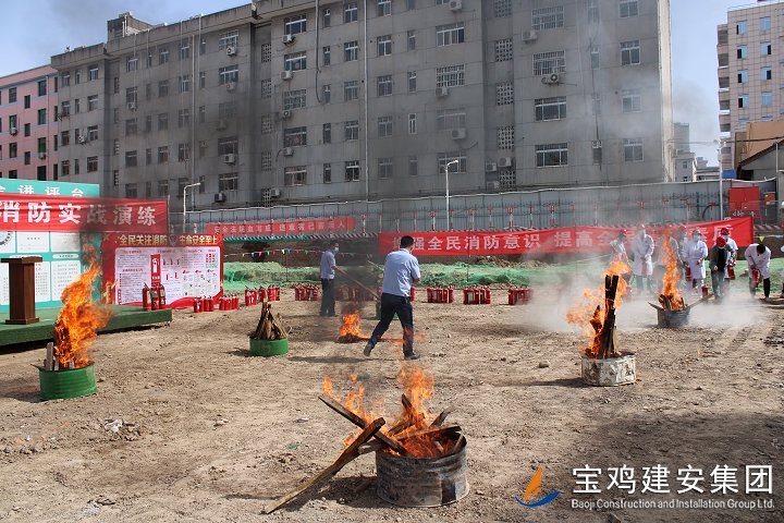 為確保此次消防實戰(zhàn)演練工作順利實施,項目部在活動開展前后開展了大量籌備保障工作:一是6月1日上午在鳳翔縣3號住院樓工地會議室召開了現(xiàn)場消防演練專項會議,進行了應急演練工作的指示和傳達;二是6月2日上午10點,消防物資準備組對倉庫消防器材和物資進行檢查,并上報消防演練指揮中心;三是6月2日下午消防實戰(zhàn)演練過程中,配合消防人員快速組織疏散現(xiàn)場工人并及時撲滅大火,確保整個演練過程有條不紊進行,活動達到了預期效果。通過此次直觀、規(guī)范的火災實戰(zhàn)演練,加強了所有觀摩及參加人員消防安全四個能力建設(shè):消防宣傳教育培訓能力、檢查消除火災隱患能力、組織撲救初起火災能力和組織人員疏散逃生能力。