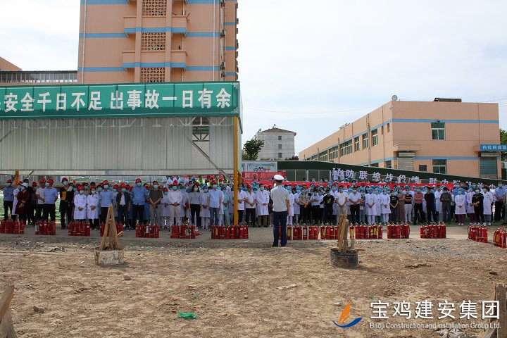 鳳翔縣醫(yī)院3號住院樓工程是全市重點建設(shè)項目之一,也是省、市、縣各級領(lǐng)導密切關(guān)注的民生工程。本項目建設(shè)地址位于縣醫(yī)院內(nèi),占地面積2100平方米,總建筑面積為45663.98平方米,框架結(jié)構(gòu)二十六層(其中地下兩層,地上二十四層),建筑高度97.1米,設(shè)計使用年限為50年,概算總投資1.98億元。項目自開工以來,受到鳳翔縣醫(yī)院領(lǐng)導高度重視和大力支持。通過此次消防實戰(zhàn)演練,項目部將更為嚴格的開展工地消防安全管理工作,重點做好以下三項工作: