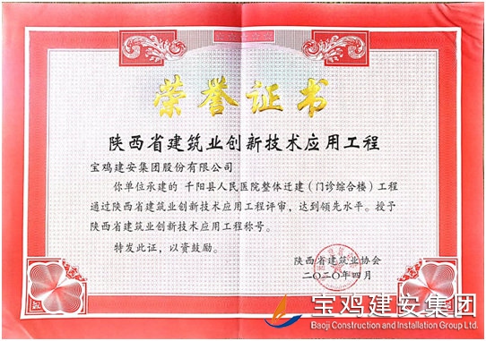 20204月,陜西省建筑業(yè)協(xié)會(huì)組織召開了2020年上半年陜西省建設(shè)新技術(shù)示范工程評(píng)審會(huì)議,由我公司承建的千陽縣人民醫(yī)院整體遷建(門診綜合樓)工程以優(yōu)異的成績通過評(píng)審,且推廣應(yīng)用新技術(shù)總體水平都達(dá)到省內(nèi)領(lǐng)先水平。