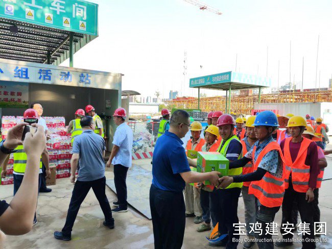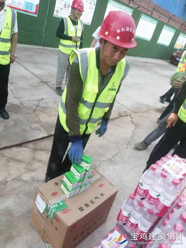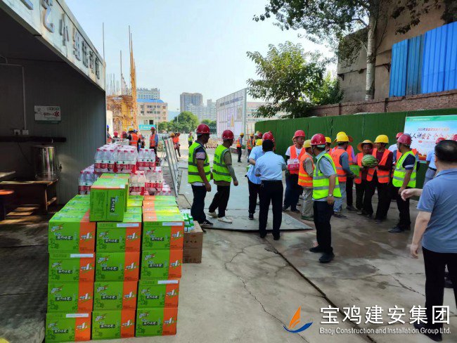 活動現(xiàn)場,高新區(qū)管委會領(lǐng)導親自將西瓜、飲料、純凈水、藿香正氣水等多種防暑降溫用品送到了現(xiàn)場的廣大員工手中,向大家三伏天堅守在一線崗位表示感謝和問候。