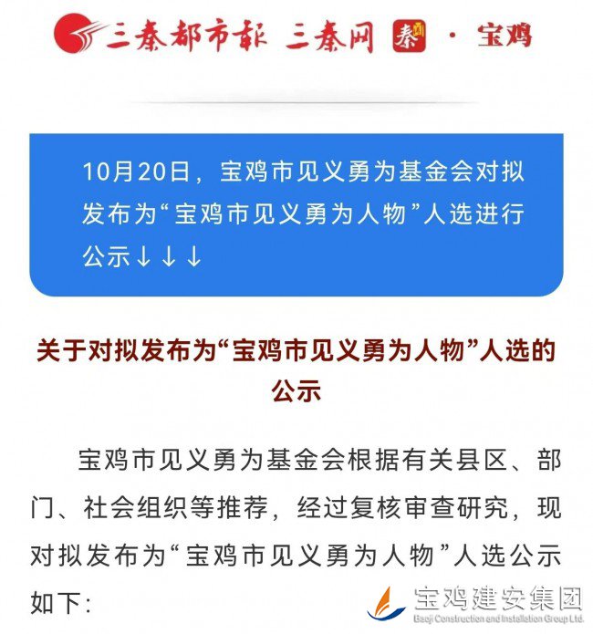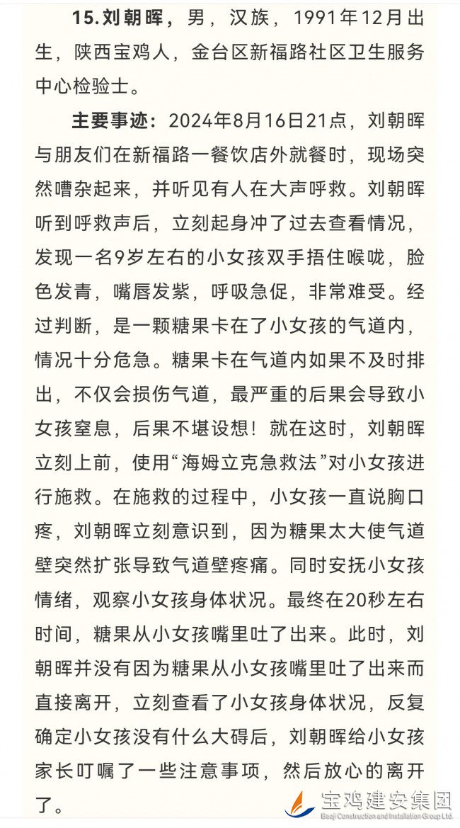 | 日前,寶雞市見義勇為基金會面向全社會對擬發(fā)布為“寶雞市見義勇為人物”人選進(jìn)行了公示,經(jīng)由公司工會推薦上報的新福路社區(qū)衛(wèi)生服務(wù)中心檢驗士劉朝暉同志光榮入選,榜上有名。 此前,劉朝暉同志危急時刻搶救小孩的先進(jìn)事跡經(jīng)網(wǎng)絡(luò)轉(zhuǎn)發(fā)后,《寶雞日報》等主流媒體亦對其進(jìn)行專訪并公開報道宣傳,曾引發(fā)社會各界廣泛好評與高度贊譽。 |