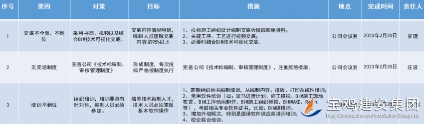 上海大潤發(fā)超市的一位清管員浦賽紅,干了一件有點雞毛蒜皮但也算不上驚天動地的大事!滅蚊整整13年,研究出一套“蚊子兵書”,一年不同季節(jié),一天不同時間段,蚊子的生活習性、活動范圍、滅殺招數,掌握得明明白白,有她在的店,夏天光腿進去站上半小時,都沒有一只蚊子來叮咬。為此,我們對這篇讓1.8億人贊嘆的報道做了深入研讀,利用“頭腦風暴法”,集體展開討論,充分發(fā)揚民主,各抒己見,集思廣益,全面分析,每個人發(fā)表觀點與感想,我們都大受震撼。卻發(fā)現(xiàn)了一個不爭的事實!掌握和運用行之有效的統(tǒng)計方法,提高工作效率。這位清管員其實在不經意間運用了一種科學的統(tǒng)計方法:因果圖法!見下圖: 浦賽紅從“5M1E”原因類別入手,即人員、機器、材料、方法、環(huán)境、測量,收集各種信息、數據資料,對分析出來的所有末端原因到現(xiàn)場進行測量、試驗、調查分析,找出主要原因,整理分析得出正確結論,制定滅蚊措施。利用科學的統(tǒng)計方法,浦賽紅把這最微不足道的小事,做到了極致,成了“專家”。由此看來,人類從最開始面對事物到逐步認識世界和改造世界的過程中,統(tǒng)計方法起到了重大作用。 在科學技術高速發(fā)展的今天,統(tǒng)計方法在潛移默化中得到了日益廣泛和深入的應用。技術管理過程中應用科學的統(tǒng)計方法排列圖法,提高投標施工組織設計審核合格率。見下圖:通過整理近年全公司投標施工組織設計編寫情況,對投標施工組織設計審核結論進行分析、統(tǒng)計、總結。根據排列圖分析,影響標書審核得分的關鍵因素是“投標施工組織設計內容針對性不強”,“項目部、分公司投標負責人或組織人員缺乏系統(tǒng)性部署”其累計頻率已達到77.77%,是主要解決的問題。經過討論、分析,按照PDCA原則,最后制定了相應實施對策與措施,落實責任人和完成時間,對策表見下圖:學習永無止境,在技術管理方面要不斷掌握和應用更多的統(tǒng)計方法,這樣就有利于更好地解決技術問題。除此之外,端正工作態(tài)度,提高自身業(yè)務水平。立足平凡崗位,從點點滴滴日常工作小事做起,腳踏實地,改變思維,創(chuàng)新工作。從而做到知己知彼,百戰(zhàn)不殆。